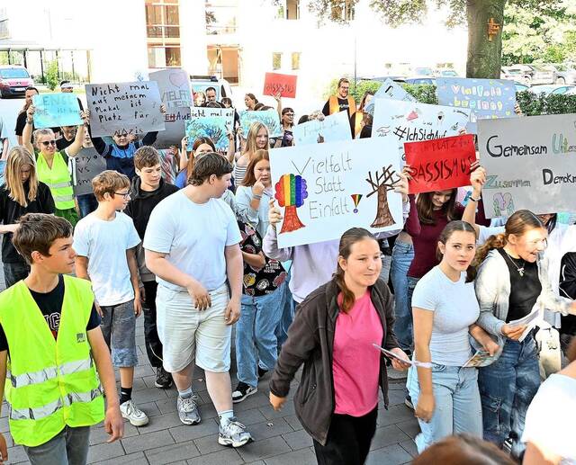 Die Lengeder IGS-Schüler demonstrieren für Demokratie und gegen Rassismus.Foto: Ralf Büchler