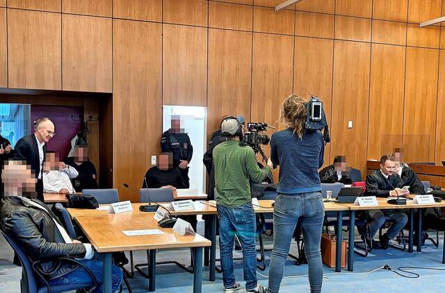 Die Angeklagten im Brandanschlags Prozess vor dem Landgericht Hildesheim warten auf das Urteil. Der Prozess stieß bei verschiedenen Medien auf Interesse.Foto: Bettina Reese.