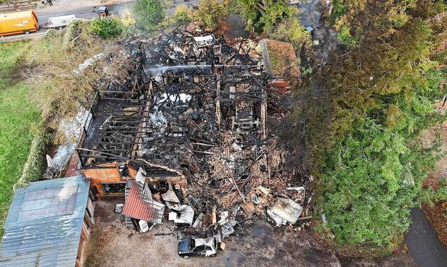 Blick von oben: Von dem Bauernhaus ist nach dem Brand nur noch eine Ruine übrig. Die Bewohner haben alles verloren.Foto: Ralf Büchler