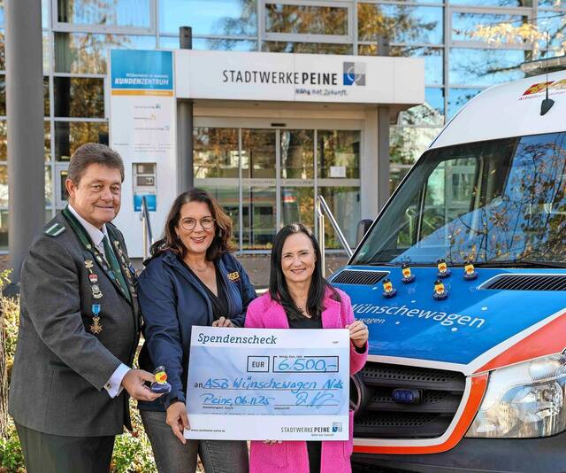 Dass auch in Zukunft Herzenswünsche von schwer Erkrankten aus der Region in Erfüllung gehen können, dafür sorgt nun eine Spende der Stadtwerke Peine in Höhe von 6.500 Euro. So viel nämlich kam beim Verkauf der Kult-Ente „Fritz Freischießen 2025“ zusammen, und der Gesamterlös wurde dem ASB-Ehrenamtsprojekt zur Verfügung gestellt.
