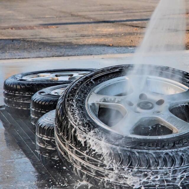 Winterdreck, Streusplit und Feuchtigkeit schädigen das Fahrzeug auf Dauer. Deshalb beginnt die Frühjahrskur am besten mit einer Fahrt durch die Waschanlage. Das Waschen mit Reinigungsmitteln an der Straße ist übrigens verboten. Zur dauerhaften Lackpflege kann eine Behandlung mit Konservierungswachs erfolgen. Ist älterer Lack matt und Wasser perlt nicht mehr ab, dann eignet sich eine Wagenwäsche mit Hartwachs. Neuer, bis zu einem Jahr alter Lack sollte möglichst nur mit klarem Wasser gewaschen werden – auf keinen Fall Lackreiniger oder Polierwachs verwenden.