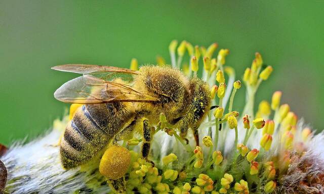 Vollgepackt mit Pollen und Blütenstaub: Weidenkätzchen sind nach dem langen Winter eine der ersten und oft wenigen Nahrungsquellen für viele Insekten. Foto: Patrick Pleul