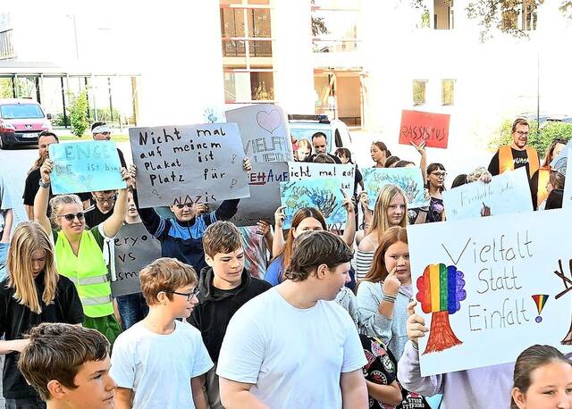 Die Lengeder IGS-Schüler demonstrieren für Demokratie und gegen Rassismus.Foto: Ralf Büchler