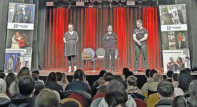 Ebenso anschaulich und praktisch waren die Aufführungen des Präventionstheaters „Mensch, Theater“, das an einem Tag in der Kulturscheune aufgeführt wurde. Im Mittelpunkt des Theaterstücks „Meine, Deine, Unsere Welt!“ standen Rassismus, Vorurteile und Fremdenhass. Das Besondere: Die Schülerinnen und Schüler der siebten Jahrgangsstufe konnten aktiv die Handlung mitbestimmen.