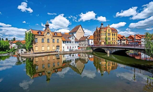 Schöner Ausblick aus den historischen Fachwerkhäusern: Eschwege liegt am Ufer der Werra – und ist eine der schönsten Fachwerkstädte Deutschlands.FOto: imago images/ Depositphotos
