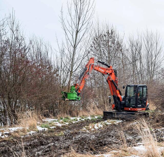 Einsatz an der Fuhse: Mit einem Bagger lässt die Gartenbaufirma die Gehölze entfernen.Foto: sz-pa/rk