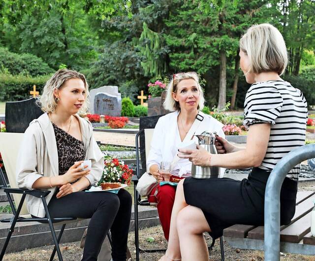 Kaffeeklatsch der besonderen Art: Zum Friedhofscafé in Wesendorf bringt Tahnee Winters (r.) alles mit, was dazu gehört.Foto: Sebastian Preuß