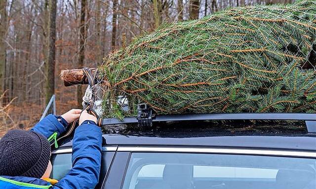 Wohin mit dem Baum im Auto? Und was ist für einen sicheren Transport auf vier Rädern zu beachten? Transportiert werden kann der Baum – je nach Größe – im Kofferraum, im Fahrgastraum oder auf dem Dach. Grundsätzlich gilt bei allen drei Varianten: Den Baum gegen Verrutschen sichern, am besten mit Spanngurten. Die verhindern auch, dass der Baum bei einer Vollbremsung zum Geschoss wird und Schäden anrichtet, wenn er den Fahrer im Rücken trifft oder durch die Windschutzscheibe fliegt. Außerdem sollten die Äste zusammengebunden werden, sonst richten sie während der Fahrt möglicherweise Schäden an oder werden selbst beschädigt.