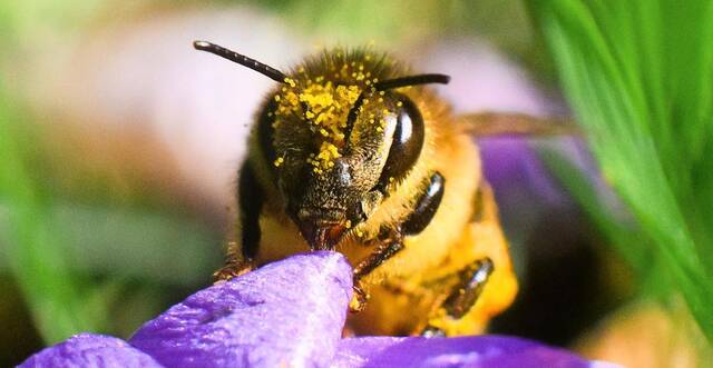 Frühe Tankstelle: Krokusse versorgen Bienen schon am Frühlingsanfang mit Pollen und Nektar.Foto: Julian Stratenschulte