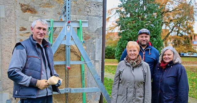 In diesem Fall war es so, dass der Grabstein mit der Schrift nach unten verlegt worden war, sodass diese noch gut zu lesen war. Allerdings war der Grabstein in der Mitte zerbrochen. Bildhauer Scheer hat ihn wieder zusammengeklebt und gereinigt. Der Stein ist jetzt gut lesbar an der Rückseite der Kirche zu finden.