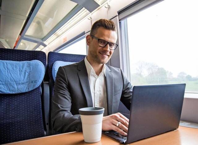IEgal, ob Zug oder im Café: Rechtlich gesehen darf der Bildschirm beim mobilen Arbeiten nicht einsehbar sein.Foto: Christin Klose